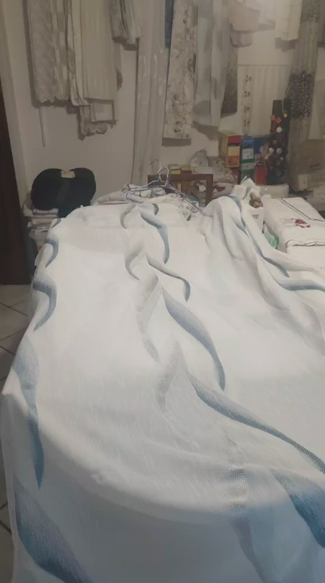 Tenda di produzione italiana, ricamata con onda azzurra e bianca a ripetersi.Alta MT 3.00 .
