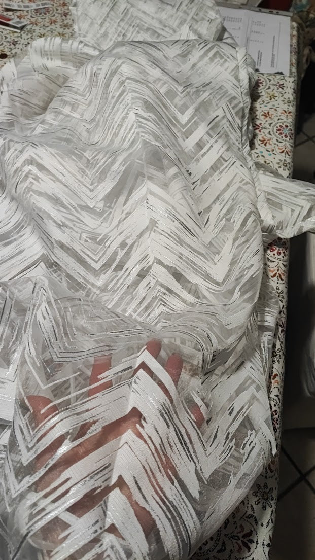 Tenda devorè laccata bianca , bianca/ grigia on n po' di argento sia confezionata che a metraggio. Disegnata e progettata in Italia.