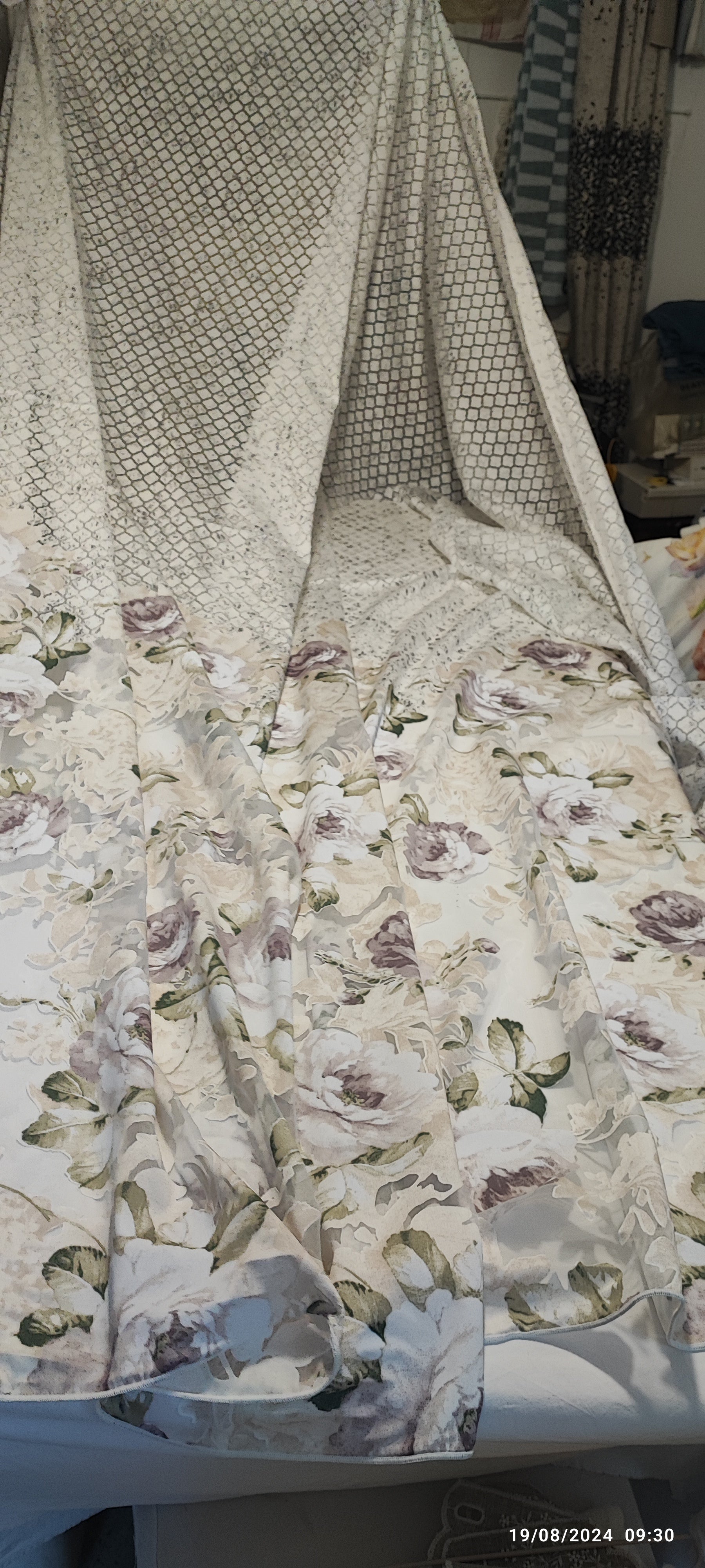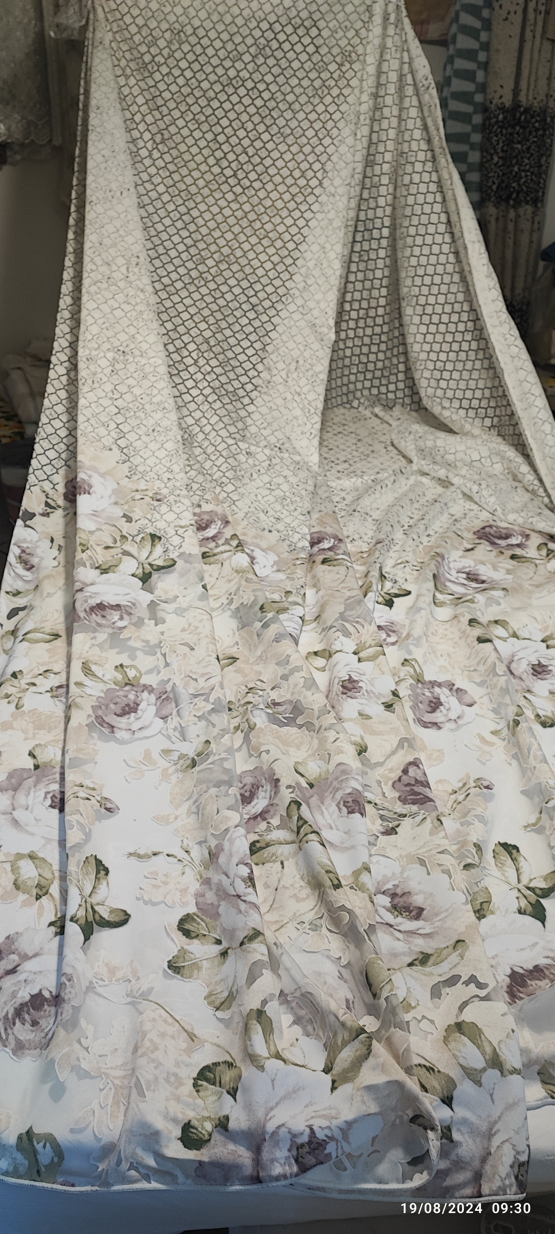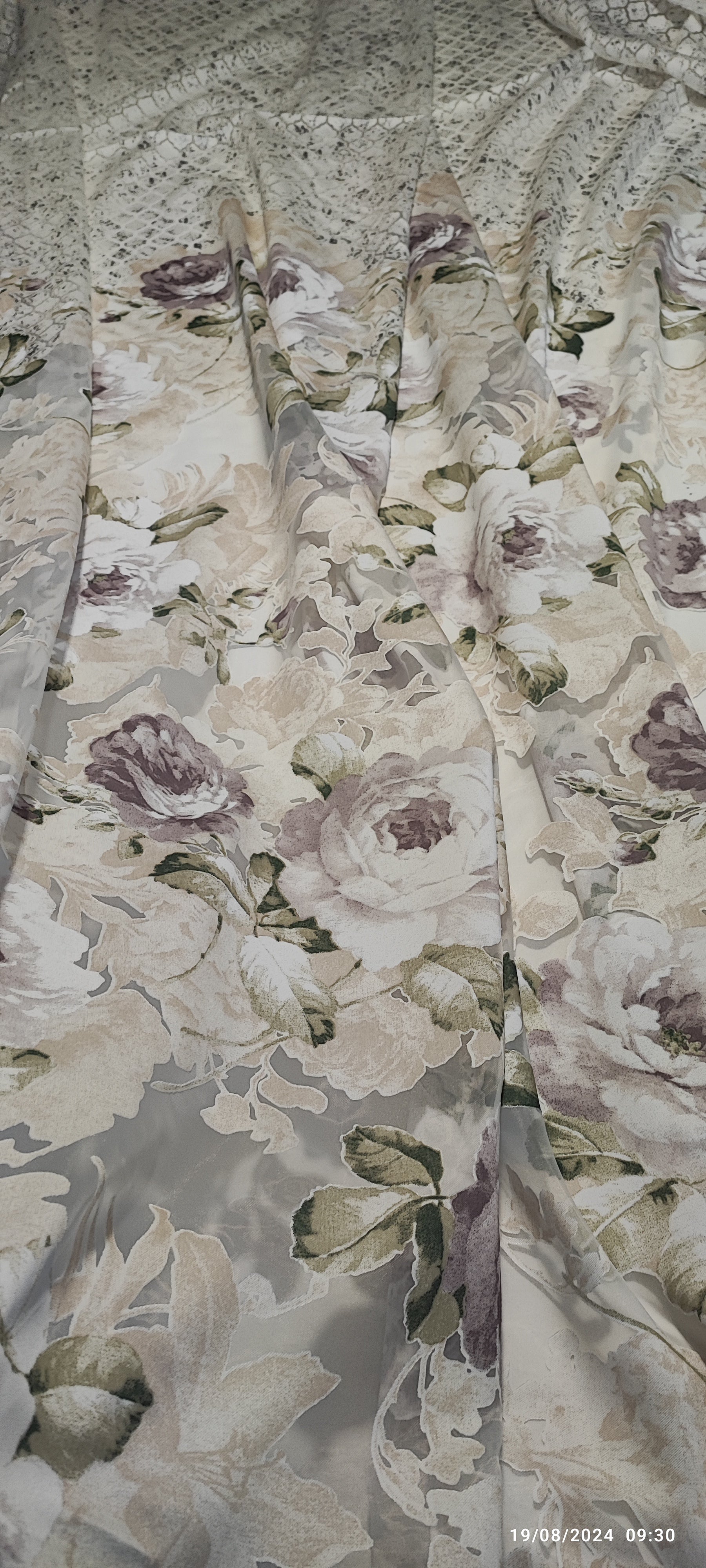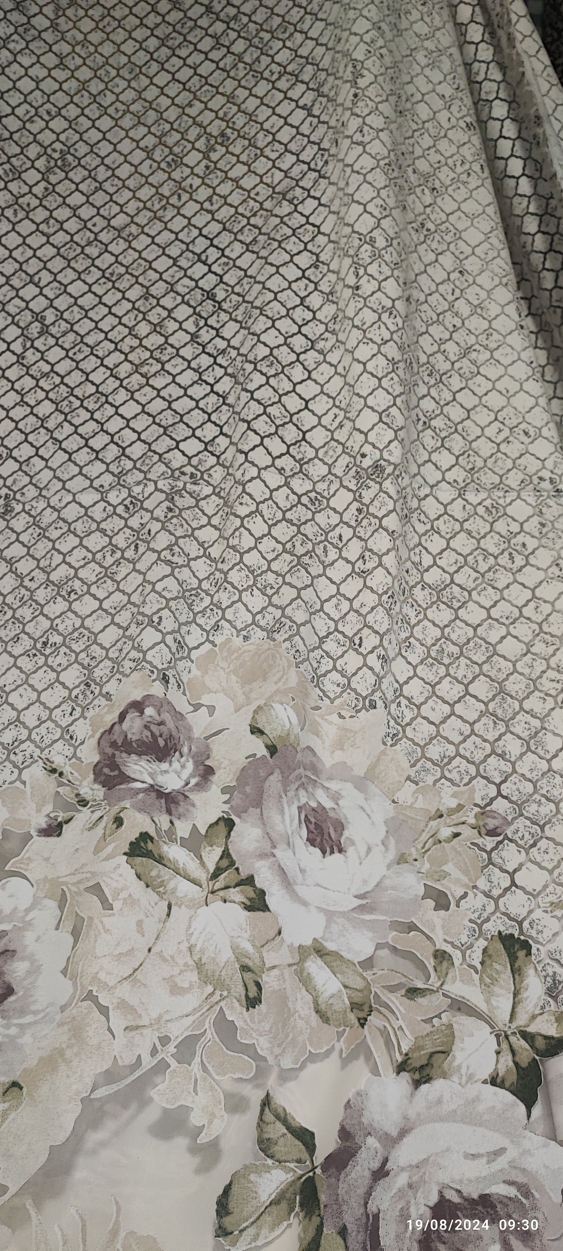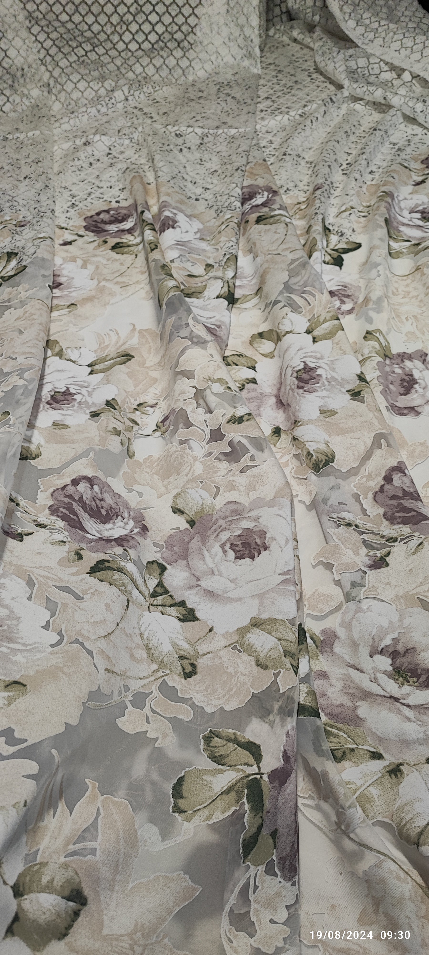 Tenda in devoree disegno digitale con rose , alta MT 3.00, un tessuto morbidissimo come seta, rifinita in fondo con piombo, produzione italiana.