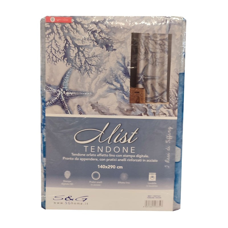 Pannello tenda 140x290cm Mist da SGhome. Tessuto semicoprente 100% poliestere effetto lino con anelle metalliche, confezione da 1 pezzo, stampa digitale.
