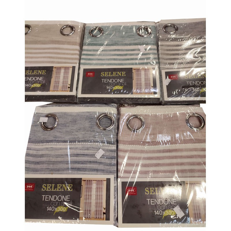 Pannello tenda righe Selene da Gitiesse. 100% poliestere, confezione da 1 pezzo 140x300cm. Tessuto semicoprente con bellissima lavorazione.
