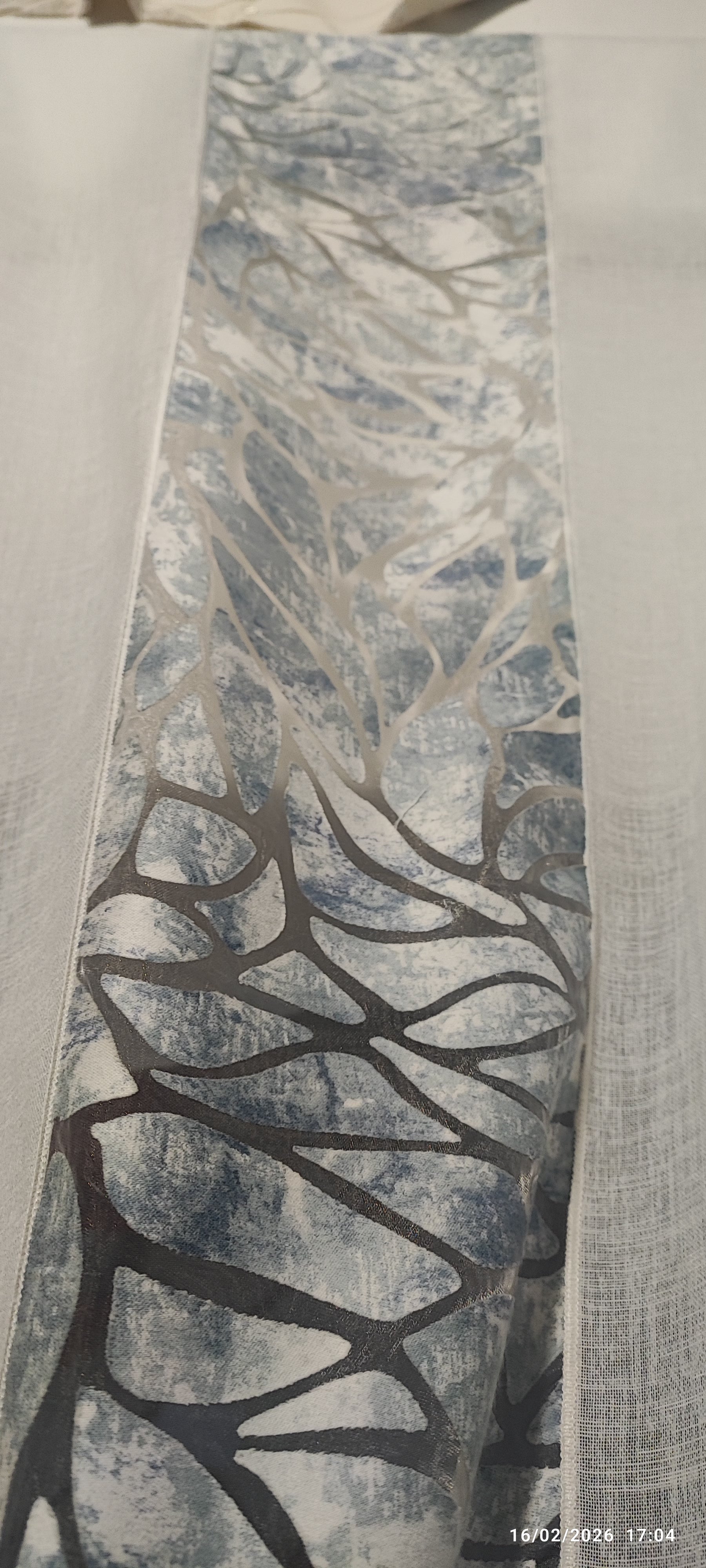 Tendina produzione italiana, Salalah con trasparenze e ricamo in rilievo..La tendina è larga 60 cm.