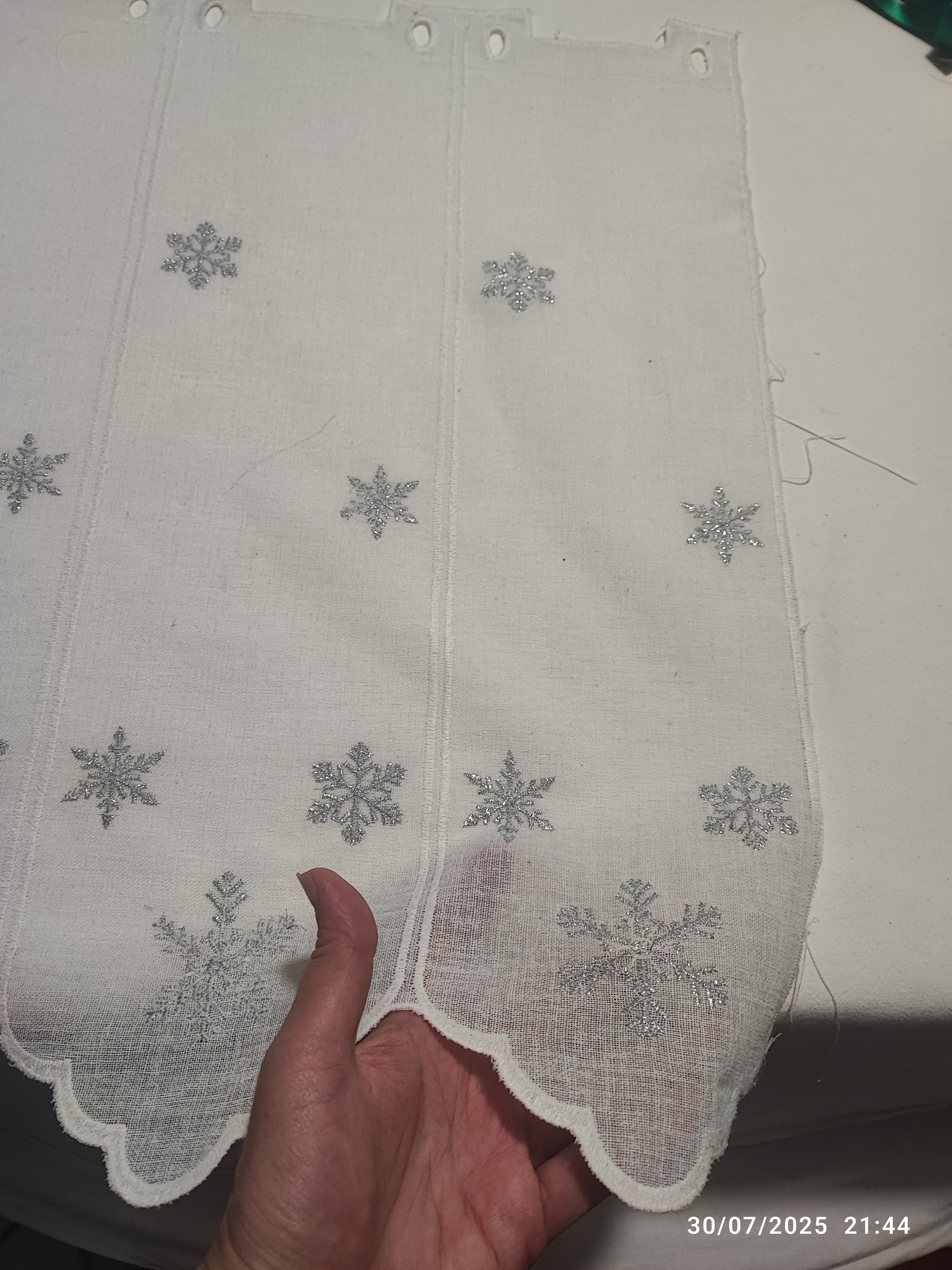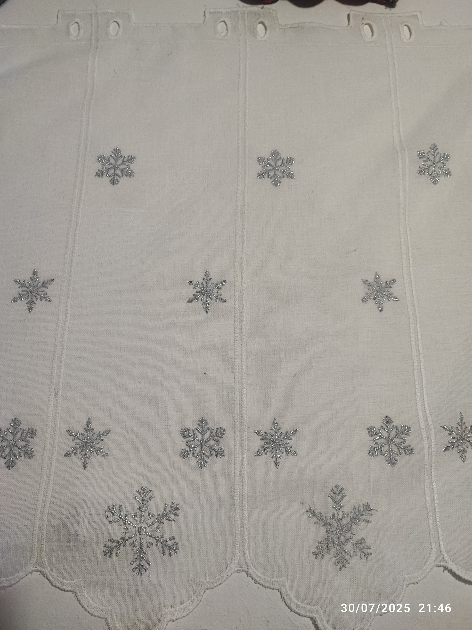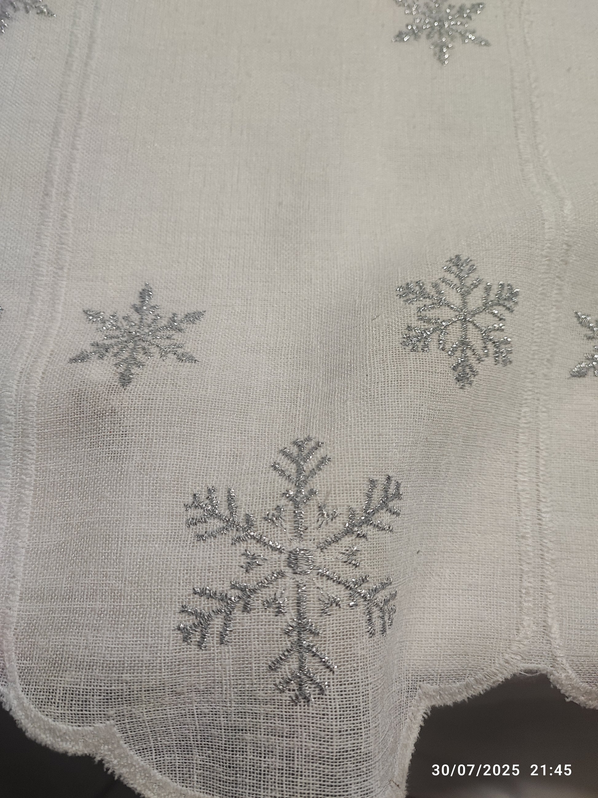 Tendina h 60 ricamata con filo d'argento fiocchi di neve produzione italiana