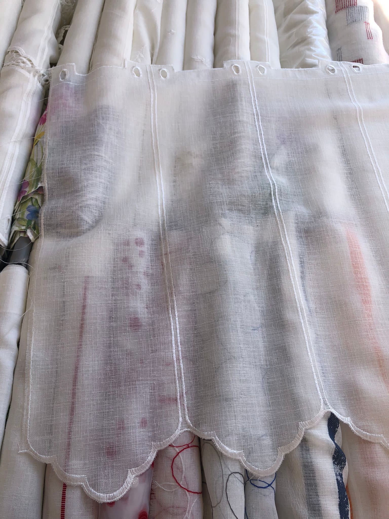 Tendina tirolese taglio verticale a vetro tessuto misto lino disegno e prodotto in Italia alta.