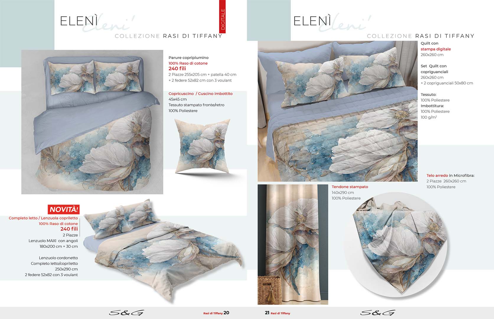 Trapuntina Eleni' collezione Tiffany misura matrimoniale 260x260, tessuto misto raso, stampa digitale con due copricuscini 50x80, morbidissima, bella e soffice adatta per primavera fino alla stagione autunnale Disegno e prodotto in Italia SgHome