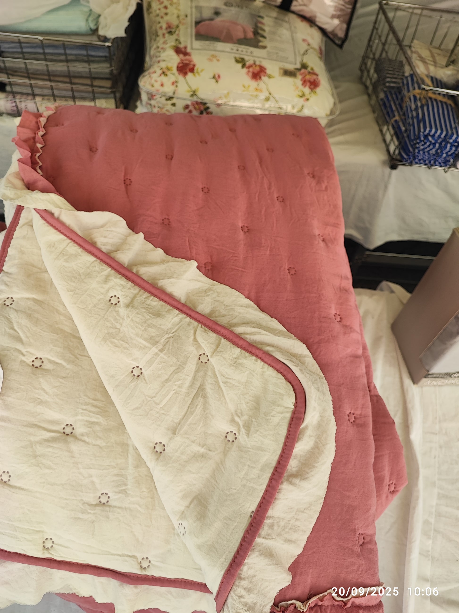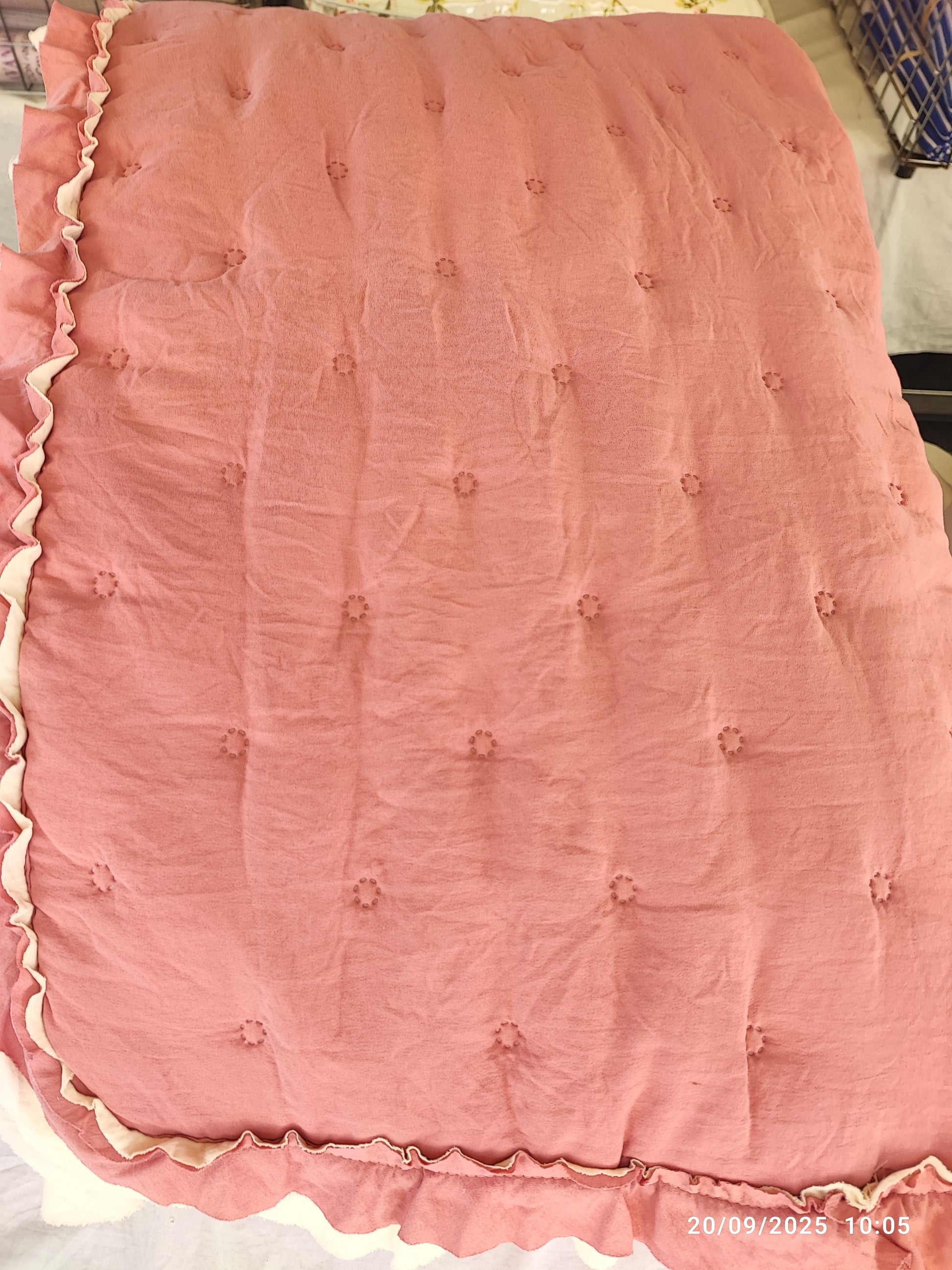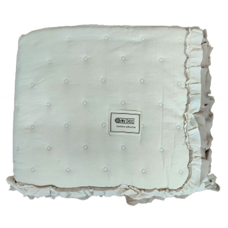 Trapuntino primavera / estate Voila da Art Decò. Tessuto microfibra con doppio volant, imbottitura in poliestere 120 gr/mq, bicolore. Ottima qualità.